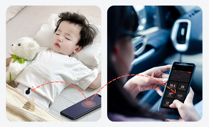 设备采用蓝牙连接,佩戴后建议手机和设备保持2米内连接。如需远距离查看数据,您可在宝宝身边留一台手机连接设备,并打开远程分享功能转发数据。设备会发热吗?